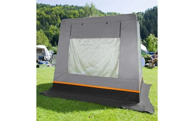 VerschlieĂźbare HochentlĂĽftung an der Vorderwand. Eingang als Sonnendach ausstellbar. Moskitogaze-BelĂĽftung an der RĂĽckwand (von auĂźen verschlieĂźbar). Innen angebrachte Abdeckklappen fĂĽr alle drei Fenster.