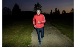 - Der Schalter der Stirnlampe ermöglicht ein Wechseln der Funktionen auf Knopfdruck: 100 % – 20 % – SOS